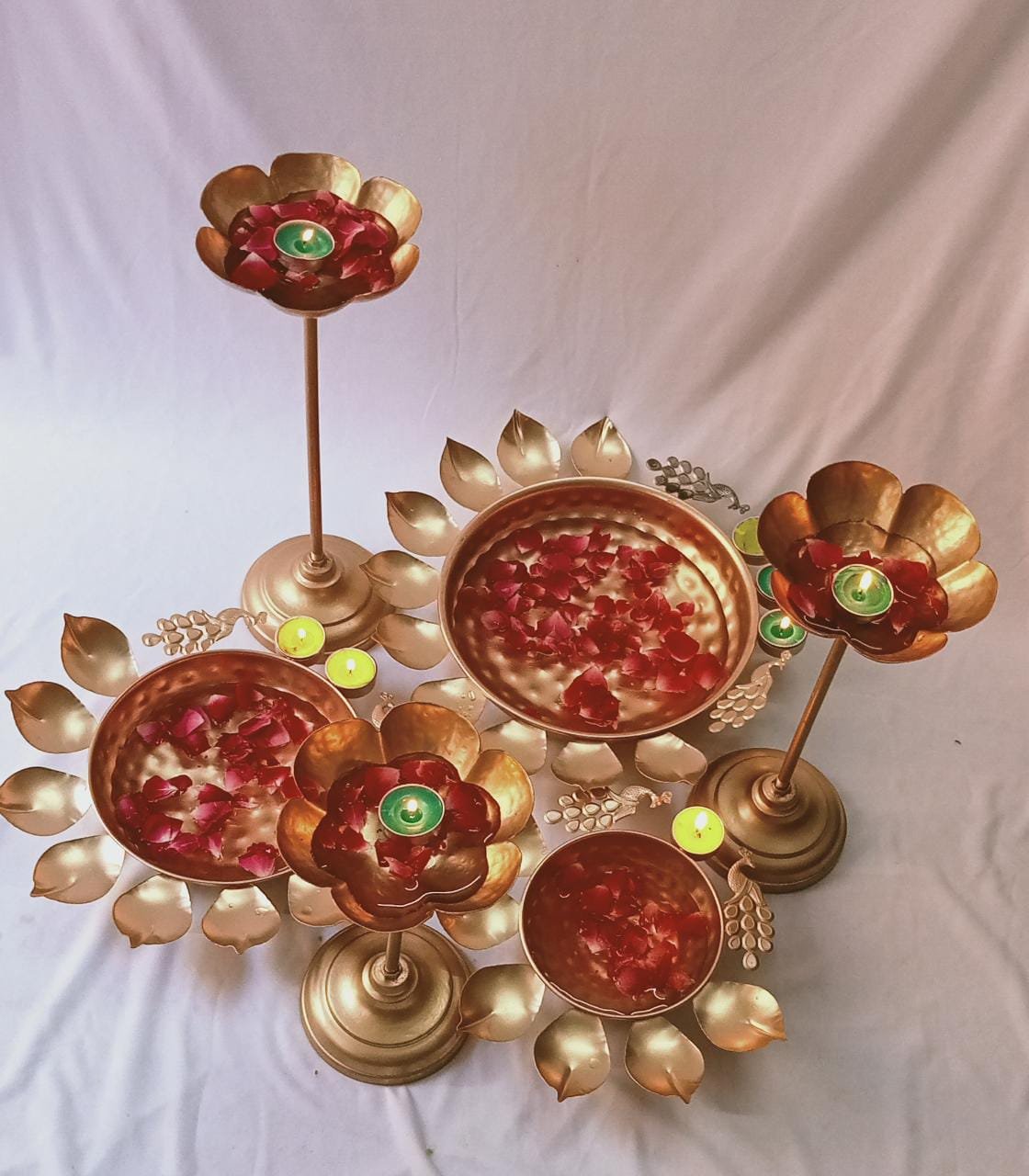 Decor Diwali Festival With Peacock Urli Bowl with Lotus Stand (set of 6pcs)